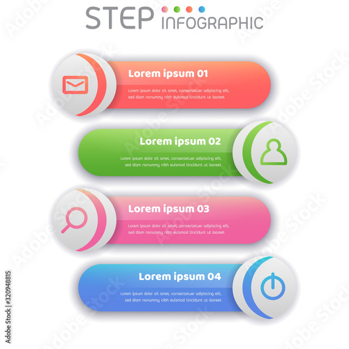 © Kanyarat, Obraz premium Geometric shape elements with steps,options,milestone,processes or workflow.Business data visualization.Creative step infographic template for presentation,vector illustration.