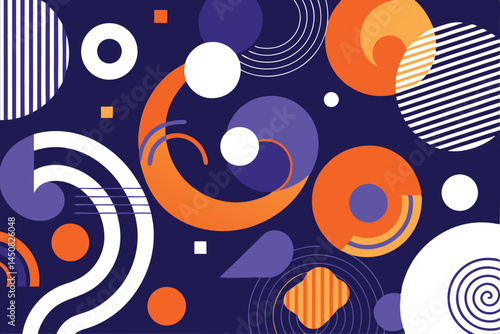 Obraz premium Geometric shapes and lines in modern style create a colorful abstract composition with a dark background