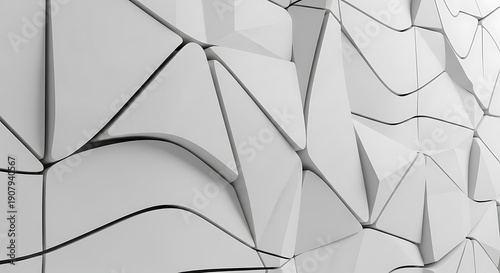 © Dedy, Obraz premium Geometric shapes create abstract 3D pattern on white surface from top viewpoint