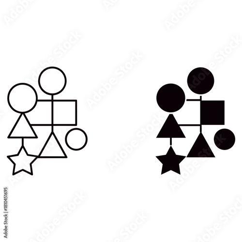 © Mdmonwarhasan, Obraz premium Geometric shapes in outline and solid black, isolated on white background