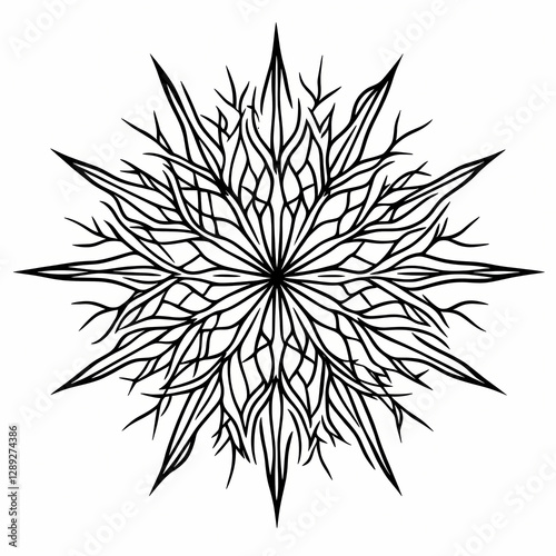 Fototapeta premium Geometric snowflake with intricate symmetrical branches and sharp points