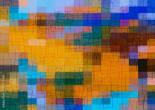 © timla, Fototapeta premium geometric square pixel pattern abstract background in brown and blue