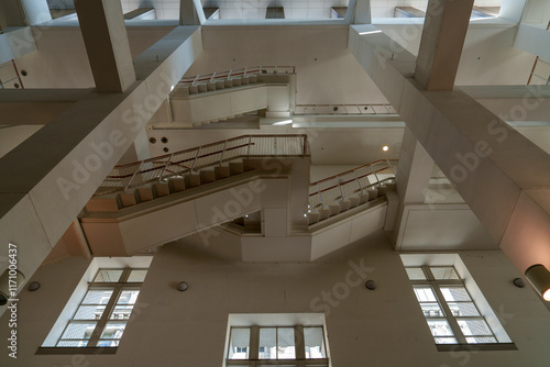 Obraz premium 幾何学的構造のモダンな階段 Geometric Structure of a Modern Staircase