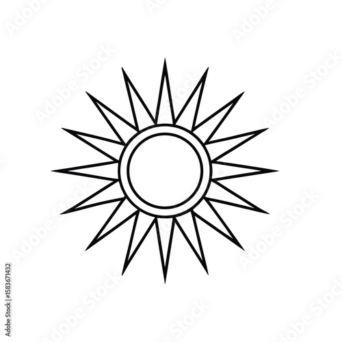 Naklejka premium Geometric Sunburst Icon – Minimalist Symmetrical Line Design with Radiating Rays