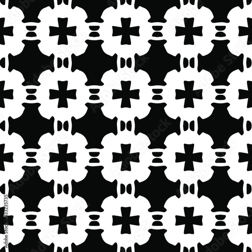 © t2k4, Obraz premium Geometric vector pattern with Black and white colors. Seamless abstract ornament for wallpapers and backgrounds.
