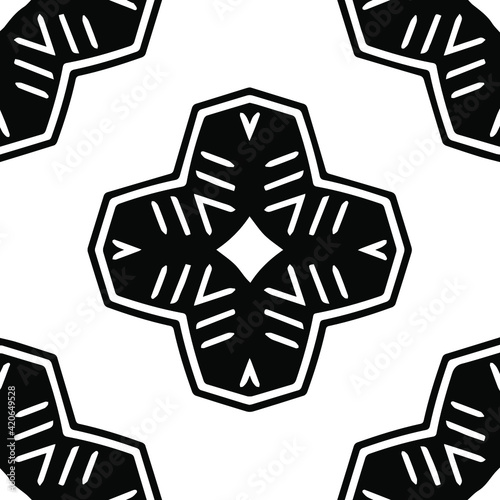 © t2k4, Obraz premium Geometric vector pattern with triangular elements. Seamless abstract ornament for wallpapers and backgrounds. Black and white patterns.