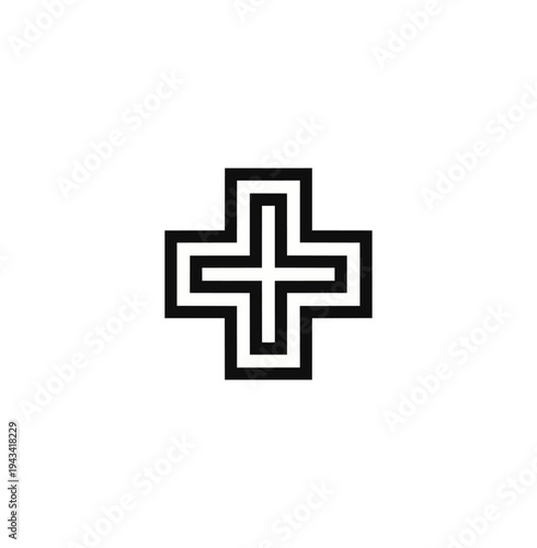 © Cari, Obraz premium Geometric white plus sign on black background