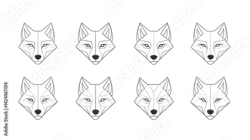 Fototapeta premium Geometric wolf head illustrations, white background, design elements