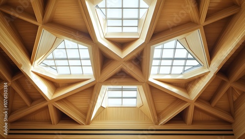 Obraz premium Geometric Wooden Ceiling with Skylights