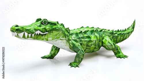© kirania, Fototapeta premium Geometrically-designed crocodile figurine against a plain background.