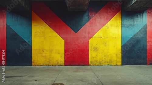 © Leo, Naklejka premium Geometrically Painted Wall Underneath Bridge Structure