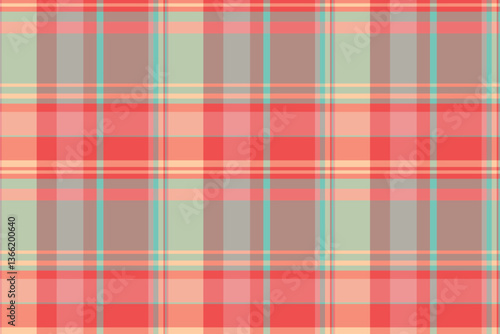 Fototapeta premium Geometry texture tartan seamless, back check vector textile. Refresh background plaid fabric pattern in red and pastel colors.
