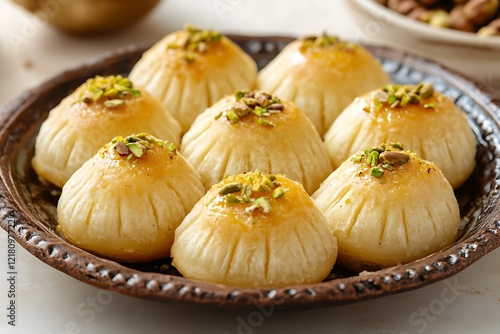 © MDSADDAM, Obraz premium Georgian dumplings khinkali with pistachios and walnuts