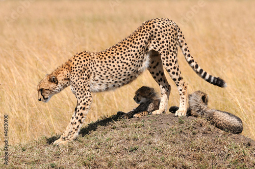 © renatehenkel, Obraz premium Gepardin mit 2 Jungen