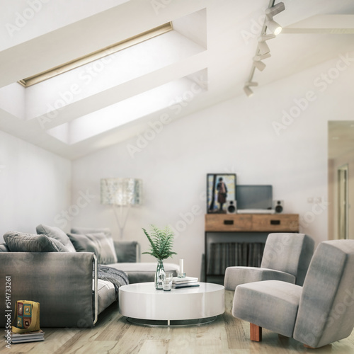Fototapeta premium Geräumige Dachwohnung nach Ausbau (Detail) - 3D Visualisierung
