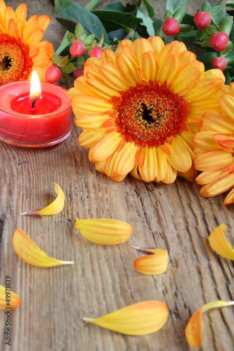 © Nieschefart, Naklejka premium Gerbera mit Kerze