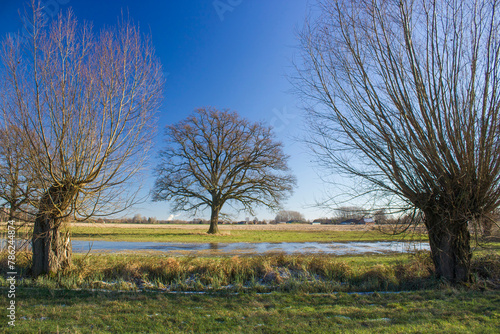 Fototapeta premium German countryside landscape with trees in winter, Lower Rhine Region, Germany