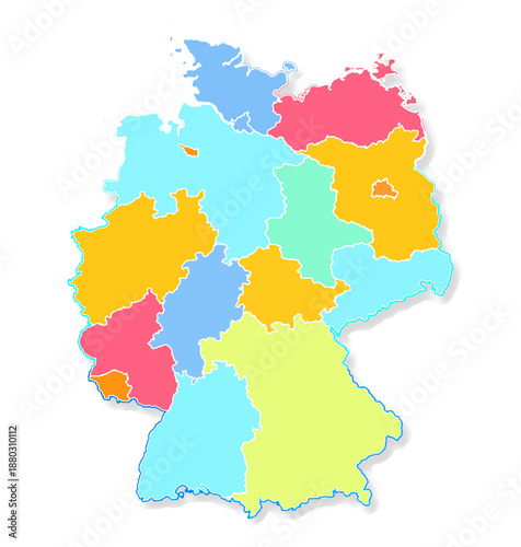 © wetzkaz, Fototapeta premium German federal states with borders, simplified