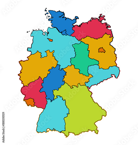 © wetzkaz, Fototapeta premium German federal states with borders, simplified