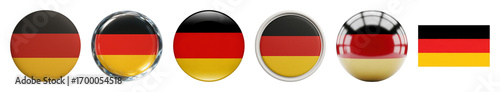 © PixeloAI, Naklejka premium German flag set including various oval, domed, button, and flat styles isolated. National identity and country symbols.