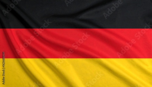 Naklejka premium German flag with black, red, and gold horizontal stripes, slightly wrinkled...