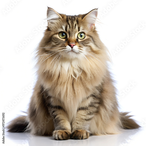 © Big, Fototapeta premium German Longhair cat with white background