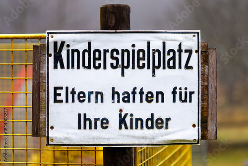 Fototapeta premium German playground warning sign emphasizing parental responsibility