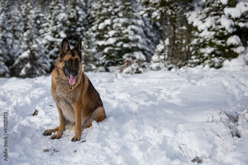 © cookiesfordevo, Naklejka premium German Shepherd dog on a hike in the woods