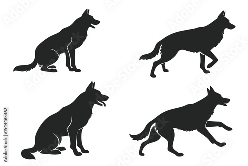Fototapeta premium German Shepherd Dog Silhouettes in Various Poses on a White Background