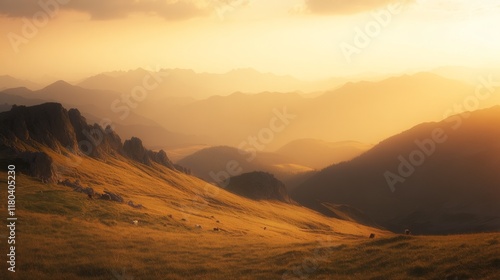 Naklejka premium german shepherd fused with the high alpine ridges in the golden hour,...