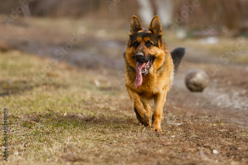 © Angelov, Naklejka premium german shepherd jumping and running in late summer meadow
