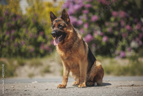 © Даша Швецова, Naklejka premium german shepherd portrait in spring in the park