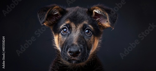 © Boomanoid, Fototapeta premium German shepherd puppy portrait against dark background