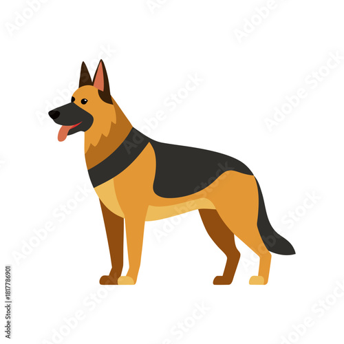 © MunniVisuals, Naklejka premium German Shepherd Standing Alert With Tongue Out Minimal And Simple Colorful Vector White Background Only