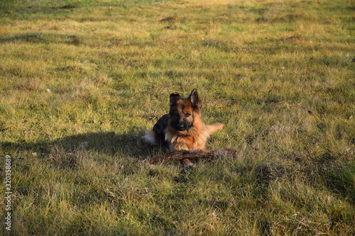 Fototapeta premium German Shepherd with a wooden stick