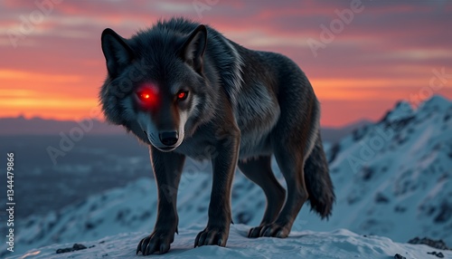 © Saka, Naklejka premium German shepherd wolf in the snow sitting in a cold winter landscape