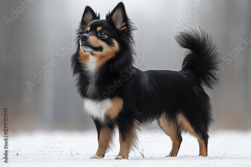 Fototapeta premium German Spitz dog standing in a natural setting. Animal side portrait.