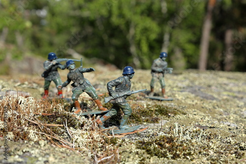 © Martin of Sweden, Obraz premium German WW2 toy soldiers. Playing outside in nature. Close up and isolated, blurred background.