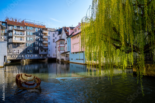 Fototapeta premium Germany, Esslingen am neckar district little venice of romantic colorful houses at waterside