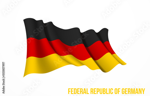 © ASEF, Obraz premium Germany flag state symbol isolated on background national banner. Greeting card National Independence Day of the Federal Republic of Germany. Illustration banner with realistic state flag of FRG.
