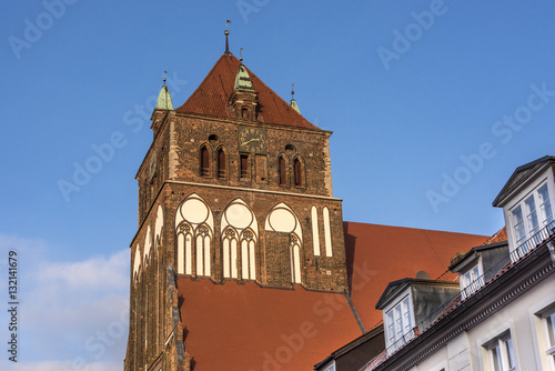 Fototapeta premium Germany, Greifswald: Steeple of the Lutheran St. Marien church (St.-Marien-Kirche).