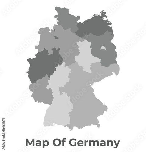 © Jayartiez, Fototapeta premium Germany Greyscale political map simple flat illustration