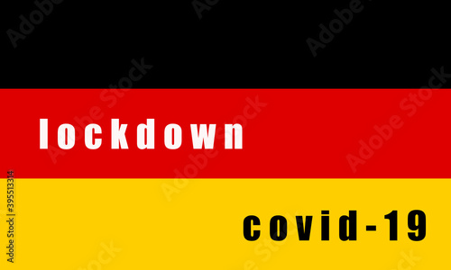 Fototapeta premium GERMANY LOCKDOWN. Stay home! Home Quarantine. Background, banner, poster with text inscription over GERMANY flag. Covid-19.