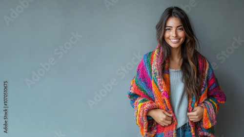 © pariketan, Fototapeta premium Germany woman wearing traditional cloak wool poncho isolated on gray
