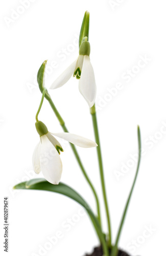 Fototapeta premium Germinating leaves snowdrops.