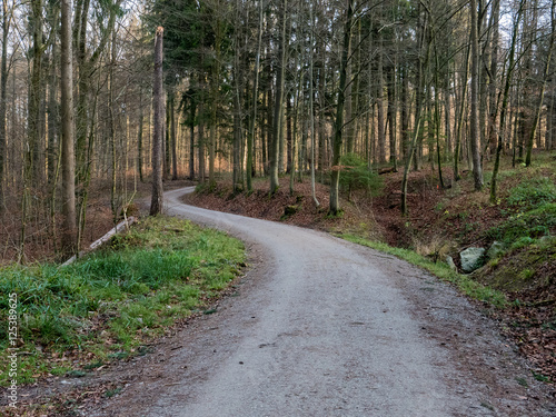 Fototapeta premium Geschwungener Waldweg im Frühlingsanfang