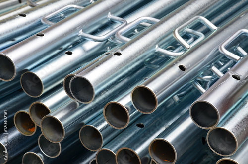 © frank g gerigk, Naklejka premium gestapelte glänzende Metall-Röhren mit Griff