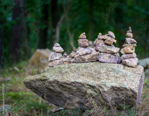 © Daniel Wussow, Obraz premium gestapelte Steine im Wald