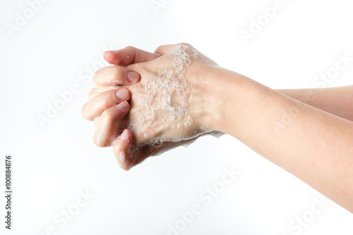 © projectio, Fototapeta premium gesture of woman washing her hands on white background