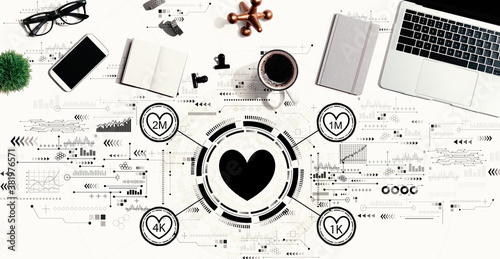 © Tierney, Obraz premium Get more likes concept with a laptop computer on a desk